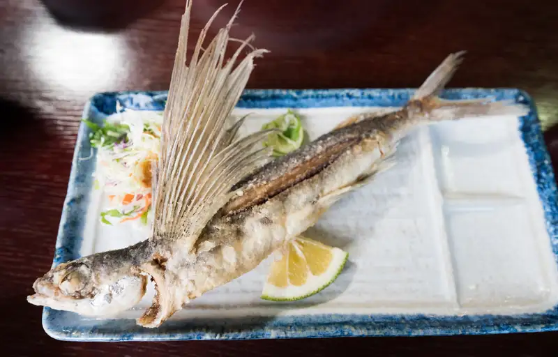 水揚げ量日本一!九州では「あご」、屋久島では「トッピー」とも呼びます。島外から訪れた人が一番驚くのは、丸ごと揚げた唐揚げ。カラッと揚がった羽根も、ヒレも、中骨までも食べることができます。他にもお刺身、一夜干しなど、調理方法も様々。