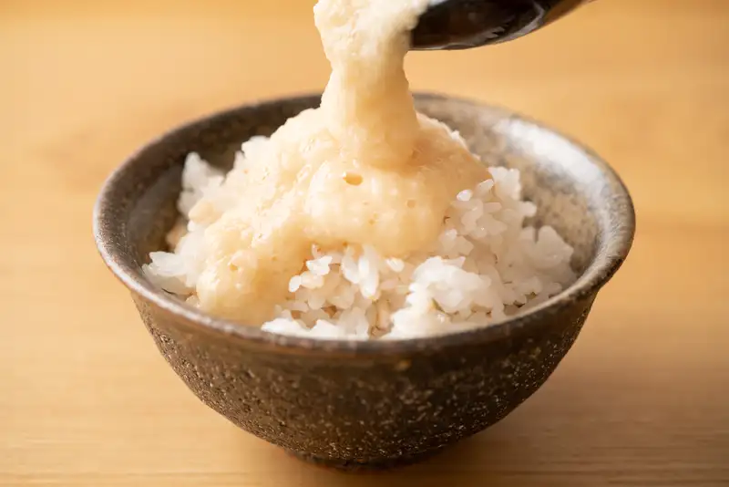 屋久島で採れる希少な山芋「大薯」だけを使い、ひとつひとつ丁寧にすりおろしたきめの細かいとろろです。 強い粘りとほのかな甘みが特長で、まろやかな味わいが口の中に広がります。また、熱を加えても固まらず、もっちりとした食感が味わえるのも美味しさの秘密です。